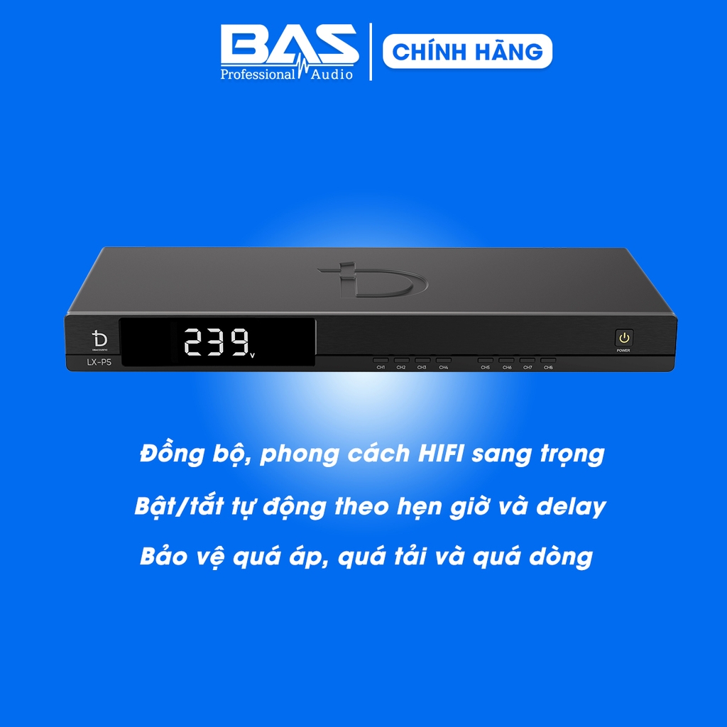 Dbacoustic LX-P5 là thiết bị quản lý nguồn điện cho toàn bộ hệ thống âm thanh chuyên nghiệp như dàn karaoke, dàn âm thanh biểu diễn sân khấu, sự kiện. Tác dụng của quản lý nguồn là ngắt điện/bật điện lần lượt từng thiết bị trong hệ thống để tránh sốc điện.